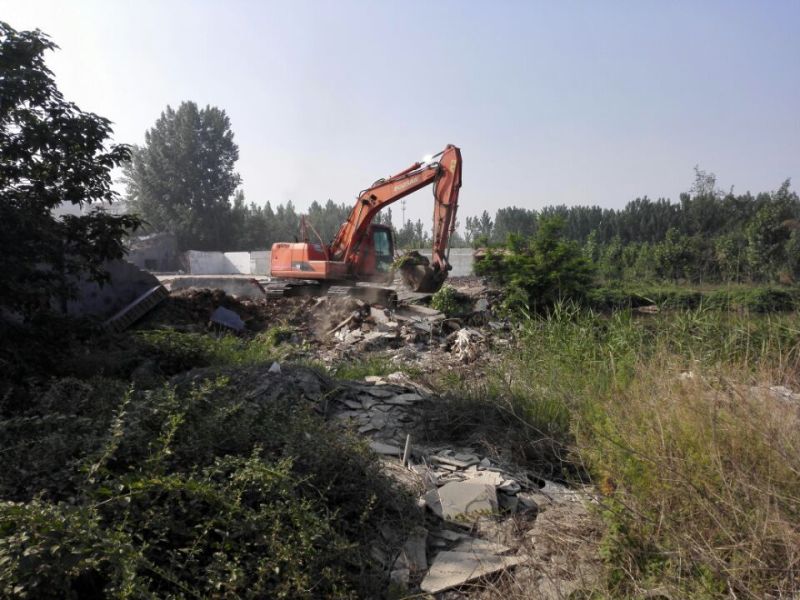 今年五月份,再次來到孝婦河畔,呈現在眼前的景象卻令人始料未及——由于規劃建設濕地公園,該段孝婦河東岸的房屋盡數拆遷,到處都是殘垣斷壁,像地震后的一片廢墟。而我們項目部選址恰恰就在這個位置。