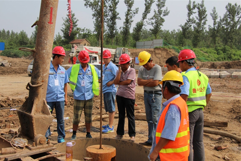 6月26日下午14時46分,積聚了多日的激情瞬間迸發,鞭炮聲中,馬南路孝婦河橋梁工程左半幅5#-6鉆孔灌注樁落下了第一錘,這也標志著孝婦河橋梁項目正式開工。沉悶而堅定的樁機作業聲音,向人們傳遞著一份從容,一份執著,而高聳的鉆架則挺立出自信,渾厚的泥漿折射出希望,一米又一米地向下鉆進,釋然的是我們沉甸甸的心。