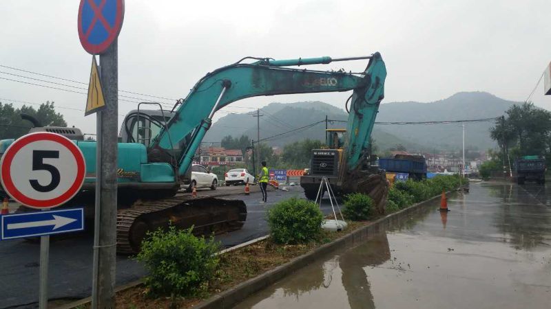 人員部署完畢,當晚19:00,烏云密布,狂風怒吼。兩組負責人帶領挖掘機、裝載機及各值班人員到達現場。姚慶敏經理高度重視,親臨一線指揮防汛工作,在現場要求大家要以“以汛為令、眾志成城、集中精力、各負其責”以“北博山中橋便道被毀壞事件”為戒,全力以赴防汛排澇,保障居民財產安全。