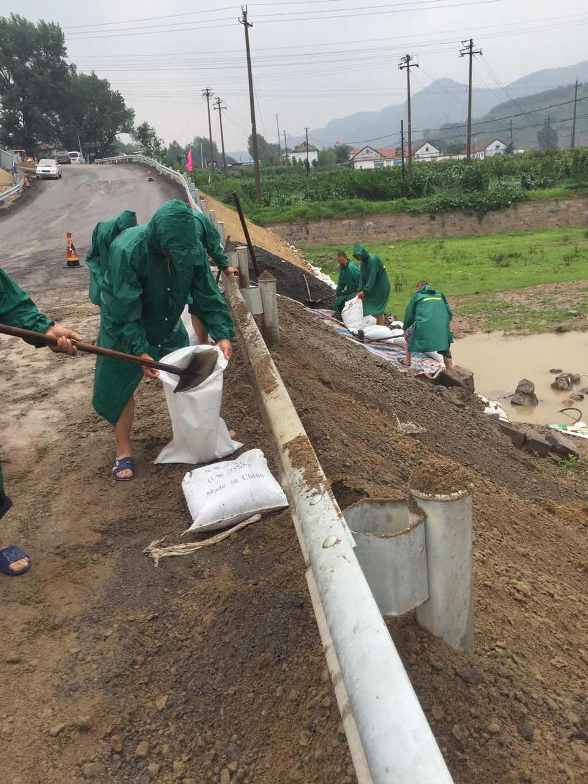 連日來,全國多個地區接連遭遇暴雨襲擊。7月18日,路面工程分公司微信工作群先后轉發了由山東省人民政府總值班室和山東省農業廳發布的《關于做好強降雨應對工作的通知》, 19日下午17:35分,分公司經理姚慶敏再次轉發了一條由淄博市氣象臺于19日17時發布的暴雨藍色預警信息,提醒大家提前預防、早做安排,注意防汛排澇。19日下午18:00,分公司經理姚慶敏召開緊急會議,即刻成立“博沂路防汛排澇應急小組”,由姚經理任組長,負責防汛排澇工作的總指揮。副經理胡立峰、尚興武兩人一組負責北博山中橋便道的防汛工作;副經理張文濤、王家濤兩人一組,帶領機械、人員堅守鄭家莊大橋施工便道。他們的任務是一旦汛情嚴重,立即啟動預案,挖斷便道泄洪、設立圍擋、懸掛警示標識;勸誡社會車輛、人員繞行,以保證過往行人及兩旁居民的人身財產安全 。