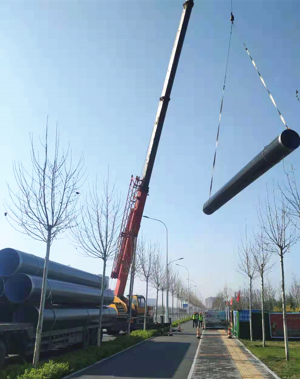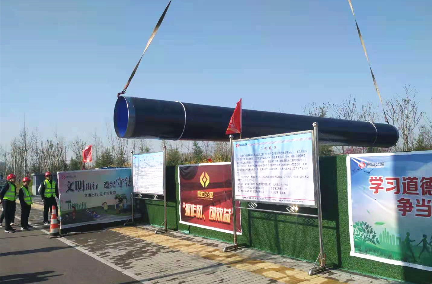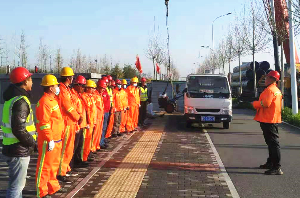 4月4日早7:00,迎著一輪朝陽,起重機吊桿緩緩升起,淄博高新區生態引水工程一期——科學城片區中水回用工程順利開工。在三公司項目部的指導和一公司的大力協助下,交安工程公司全體動員,迅速進入全面施工狀態。