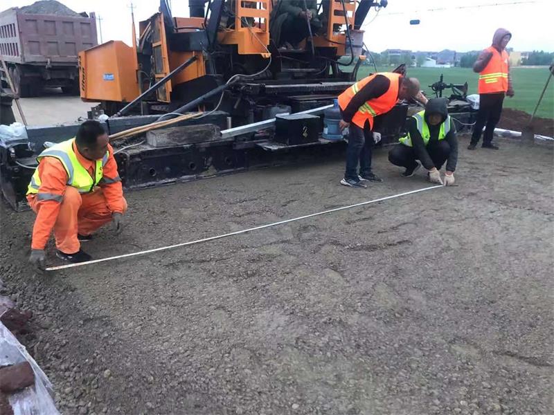 攤鋪過程中,質檢人員對攤鋪面的橫陂度、寬度、松鋪厚度、平整度等相關技術指標及時進行了跟蹤檢測,確保各項技術指標符合規范要求。