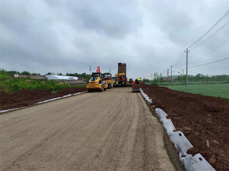 第二工程公司沭河生態路項目首次水穩攤鋪工作順利完成