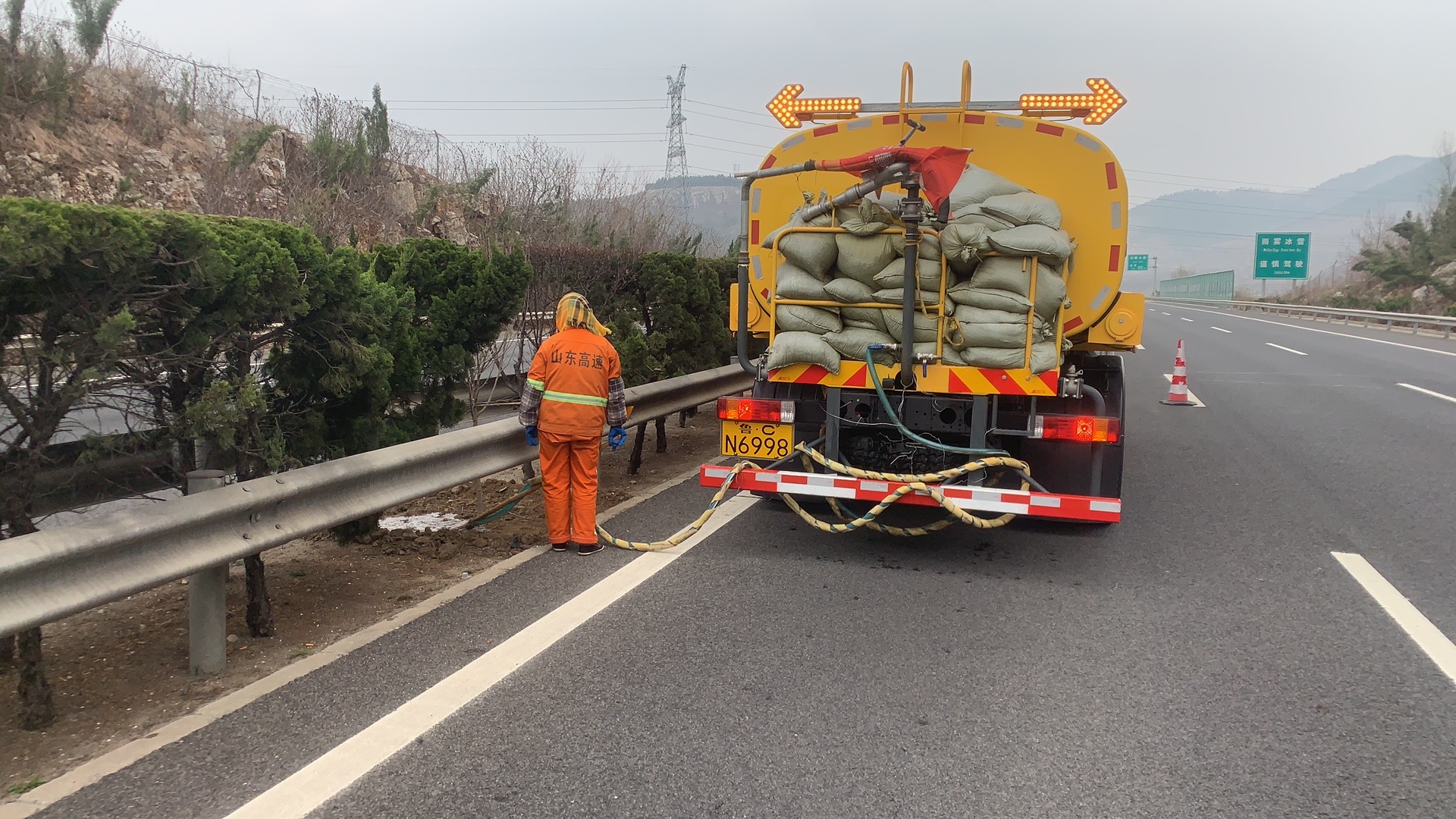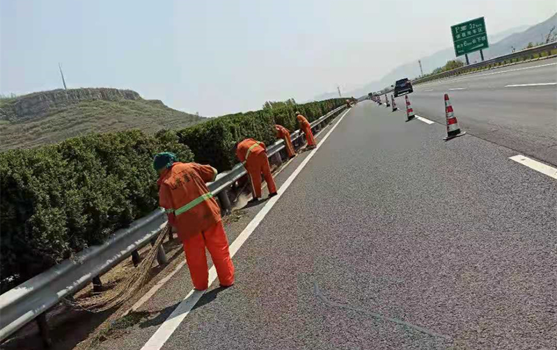 近日,青蘭小修集中力量,保障五一假期道路暢通。高速公路中央分隔帶綠化是高速公路的重要設施帶,其主要功能在于遮光防眩、分隔上下行車道、引導行車視線、美化環境緩解駕駛疲勞、緩沖失控車輛撞擊力從而保障高速行駛中的車輛安全等,故在生長季節對綠化苗木及時進行修剪整形顯得尤為重要。此次工作是對中隔帶防眩苗木進行修剪清理,主要對中隔帶栽植的龍柏、蜀檜根部及伸出波形護欄板遮擋標志牌的側枝進行修剪,并對前期中隔帶補植的綠化苗木進行澆水、封穴。