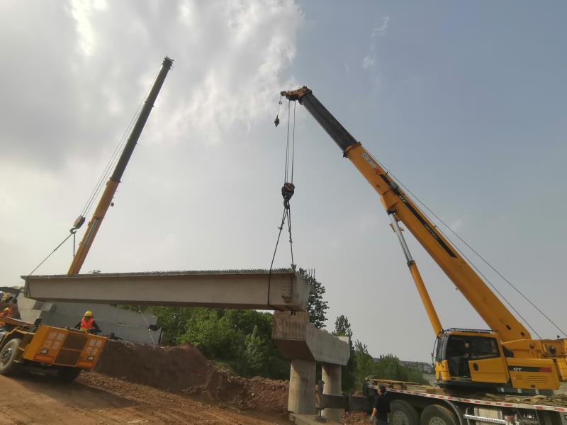 沭河生態路項目,一邊正在進行水泥穩定碎石基層施工,自水泥穩定碎石開始施工之日起,項目人員就積極協調各方資源,挑燈夜戰,全力保證水穩攤鋪工作的施工進度,搶占有利施工環境、緊抓有限施工工期。另一邊,梁板架設工作也全面展開。4月14日,沭河生態路新白馬河中橋第一片梁板開始預制,4月30日,沭河生態路第一片梁板開始架設。短短十幾天時間,梁板架設施工完成了從前期準備到現場架設的轉變,是項目施工人員的齊心協力,用汗水共同澆灌。京滬項目,紅花埠互通區匝道,也已突破層層困難,展開了路面施工工序,目前柔性基層施工工作也在全力展開中。