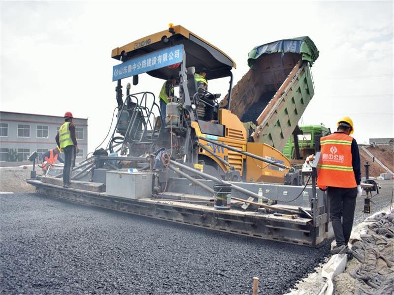 沭河生態路水泥穩定碎石基層攤鋪