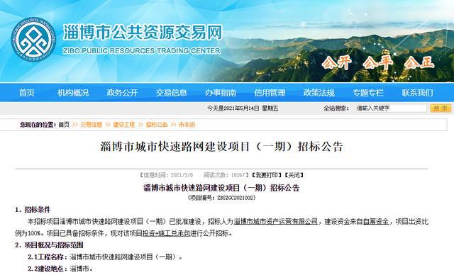 從3月份公示的一份招標公告看,淄博快速路網一期工程主要涉及原山大道、魯山大道、昌國路、寶山路、魯山大道這五條路。總投資金額高達209億元!