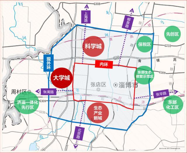 除西外環外,其他外環線的周邊區域也同樣具有發展價值。像北外環黃河大道,這條路南鄰科學城,北接桓臺南聯“橋頭堡”紅蓮湖片區;像南外環淄河大道,橫穿而過的淄博經開區,是淄博未來幾年內要打造的生態產業新城;而在東外環魯山大道兩側,淄博布局了先進制造業創新示范區、東部化工園區、綜合保稅區、東部生態修復示范區等區域,這些功能區均可以看做是牽動東城乃至全市發展引擎。