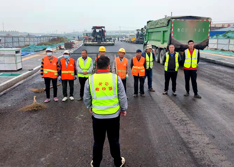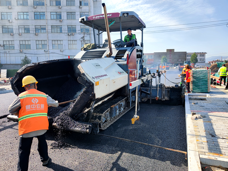 第三工程公司嚴守交通部各項規定與公路建設行業道德,在沿河東路瀝青上面層攤鋪的工作中,各崗位協調同步,在監理與業主單位現場監督下,施工人員嚴格按照施工規范施工為使面層與面層粘接好,在面層鋪筑前4-8小時提前撒布粘層瀝青,操作手與質檢人員控制攤鋪厚度。經過初壓、復壓、終壓三個壓實過程后博山沿河東路(白塔段)建設項目現有瀝青上面層攤鋪作業今日全部完成。
