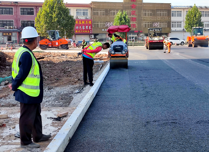魯中公路第三工程公司博山項目部與工程施工單位,始終本著質量第一,安全為上的原則,精打細算,嚴控施工細節,在沿河東路工程各施工階段精確控制高程和平整度,確保瀝青上下面層保證厚度的同時保證平整度,各環節嚴格要求工程每一步都能保證道路的品質滿足規范設計要求。