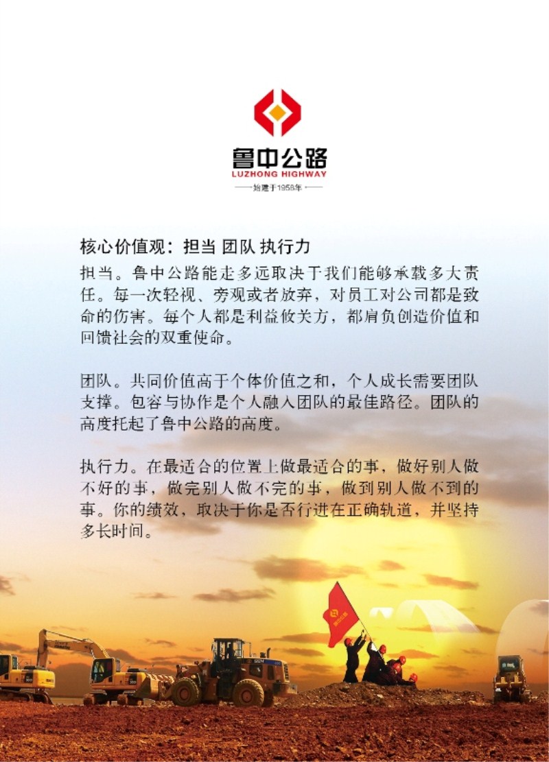 未來的路還很遠(yuǎn),但我們的信念不變,員工的努力,妻子的支持,孩子的爭氣成就了我們的底氣。我們心中都有一個夢,一個溫暖的,逐漸在清晰走來的夢。渴望在我們這一代人手中,通過努力打造一個受人尊重的,充滿生機(jī)與活力的魯中公路。